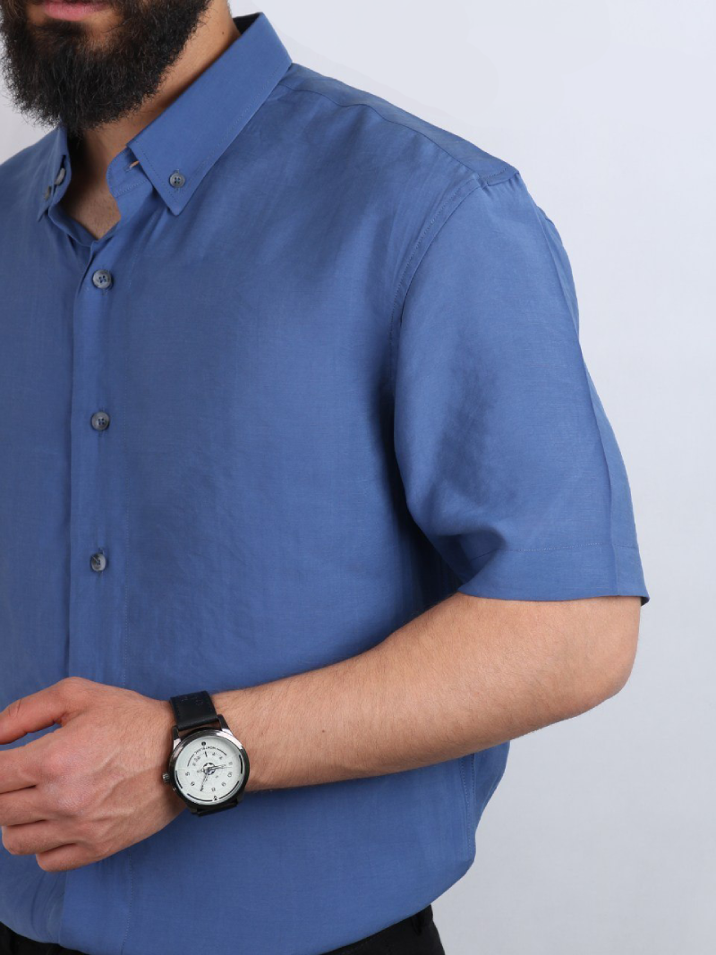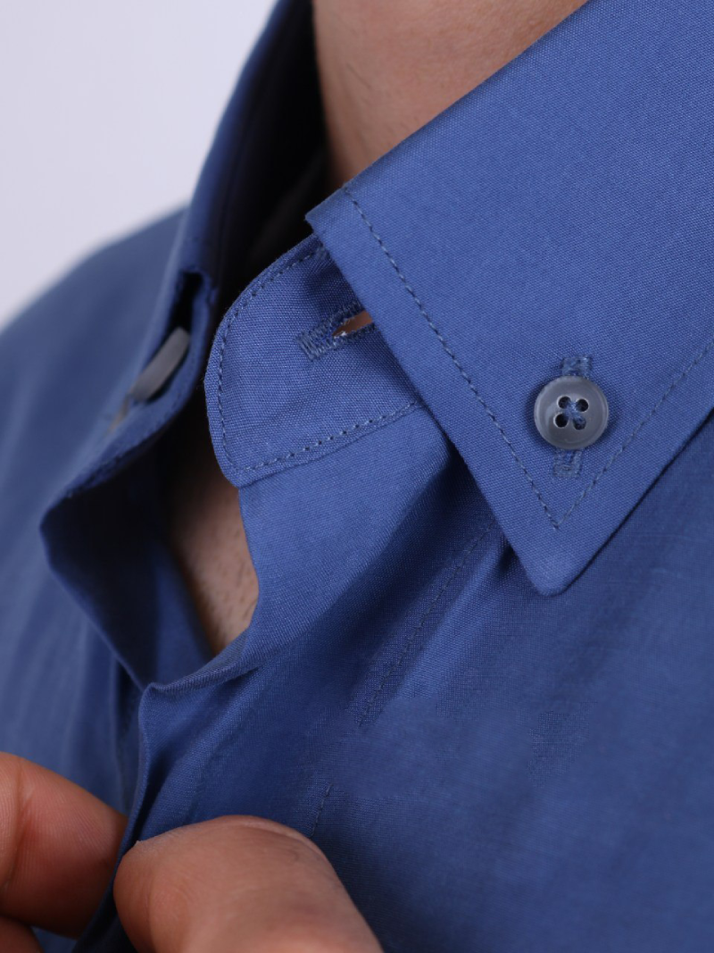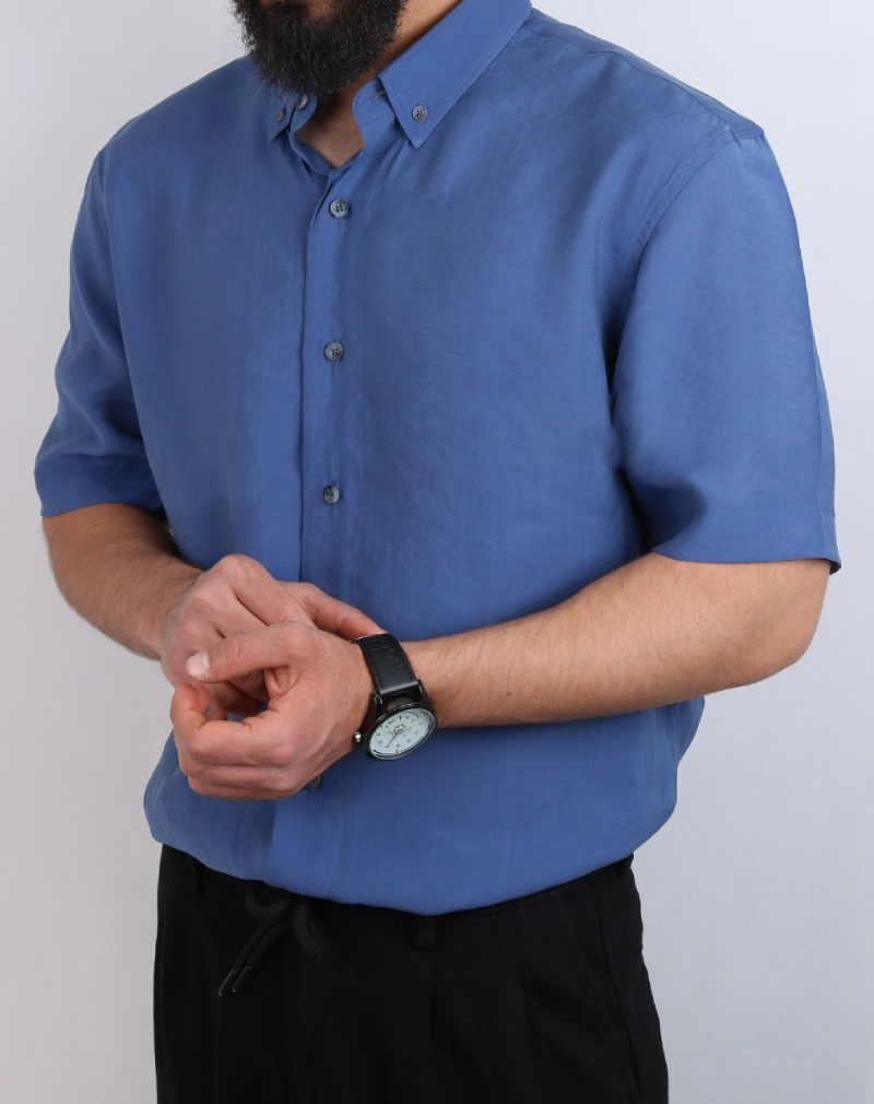این جنس پارچه در کنار لطافتی که دارد کمی شاین هم به پیراهن داده است که به زیبایی رنگ آبی آن افزوده است.