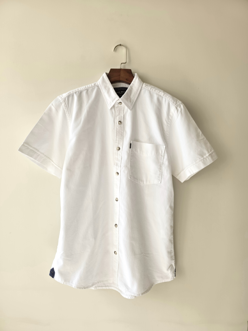پیراهن سفید کتان تک جیب 66852